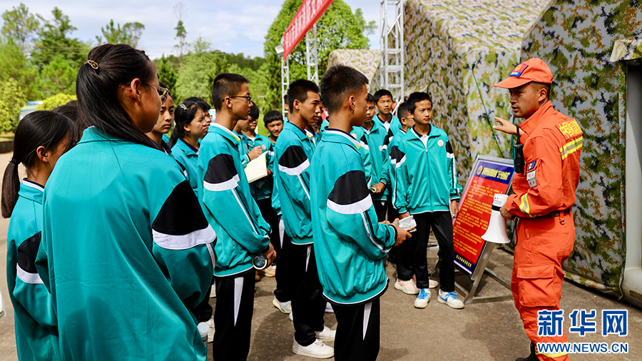 森林消防員講授安全教育知識(攝于6月29日)。新華網發(云南省森林消防總隊保山支隊供圖)
