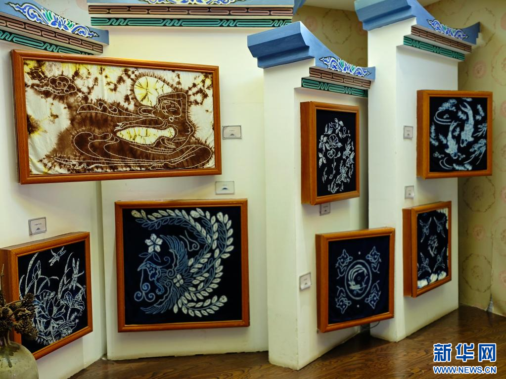 位于周城村的璞真扎染博物館內展出的扎染作品(6月16日攝)。新華網發(劉東 攝)