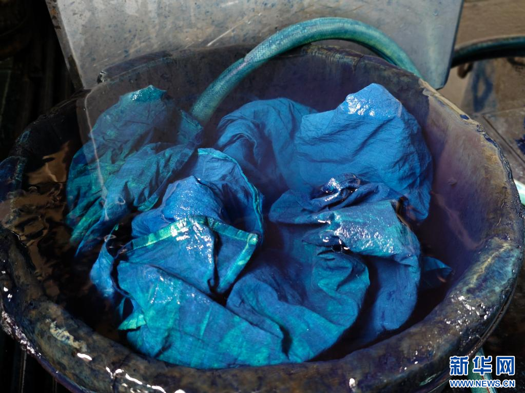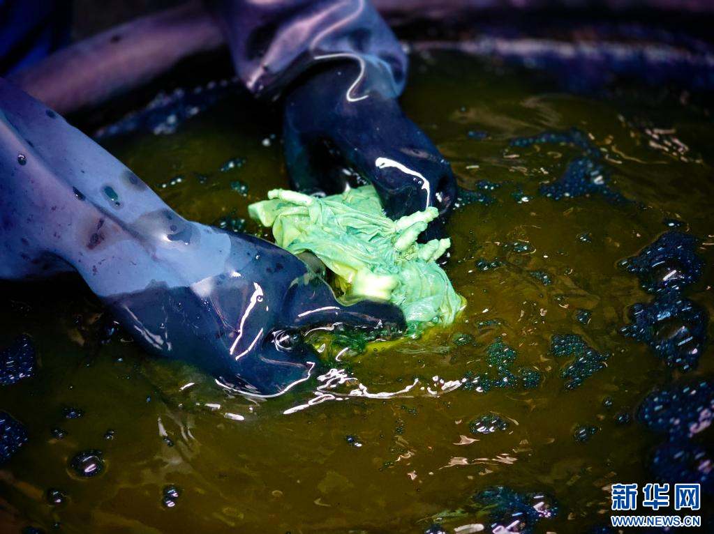 博物館的工作人員正在對布料進行染色(6月16日攝)。新華網發(劉東 攝)