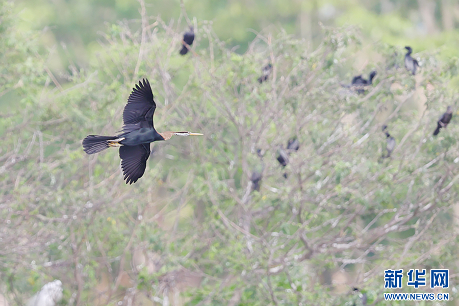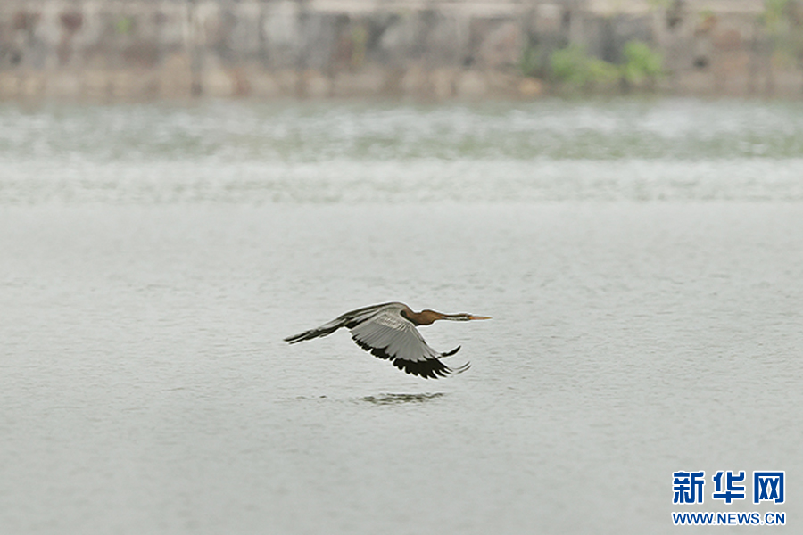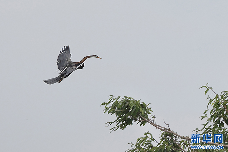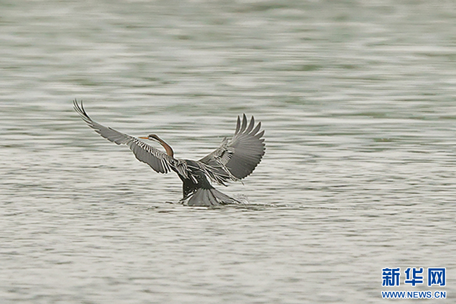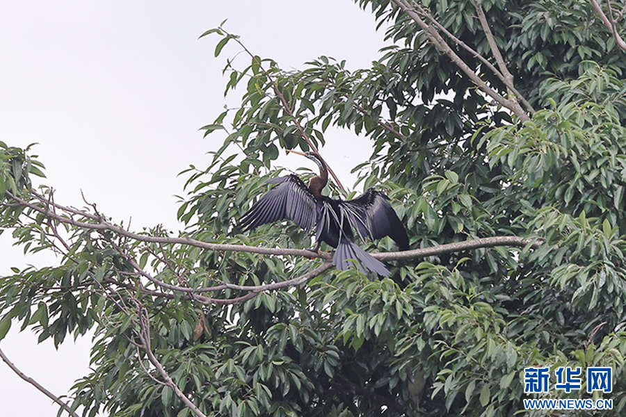 罕見鳥類黑腹蛇鵜(6月29日攝)。新華網發(楊學飛 攝)