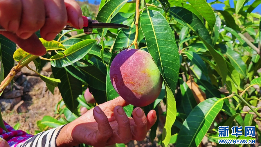 果農在采摘芒果(6月28日攝)。新華網發(蘇波 攝)