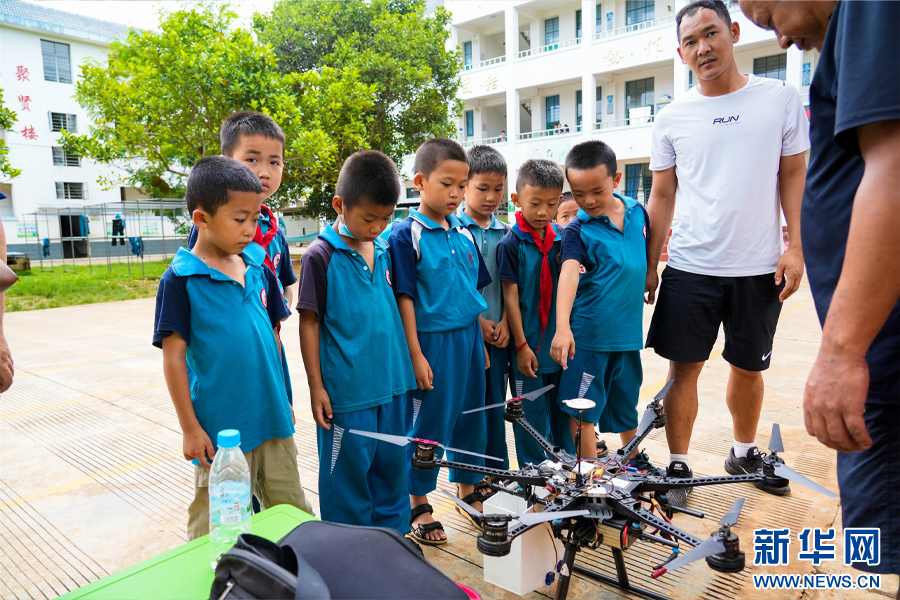 云南省模型運動管理中心老師向同學們講解植保無人機(6月29日攝)。新華網發(段宗智 攝)