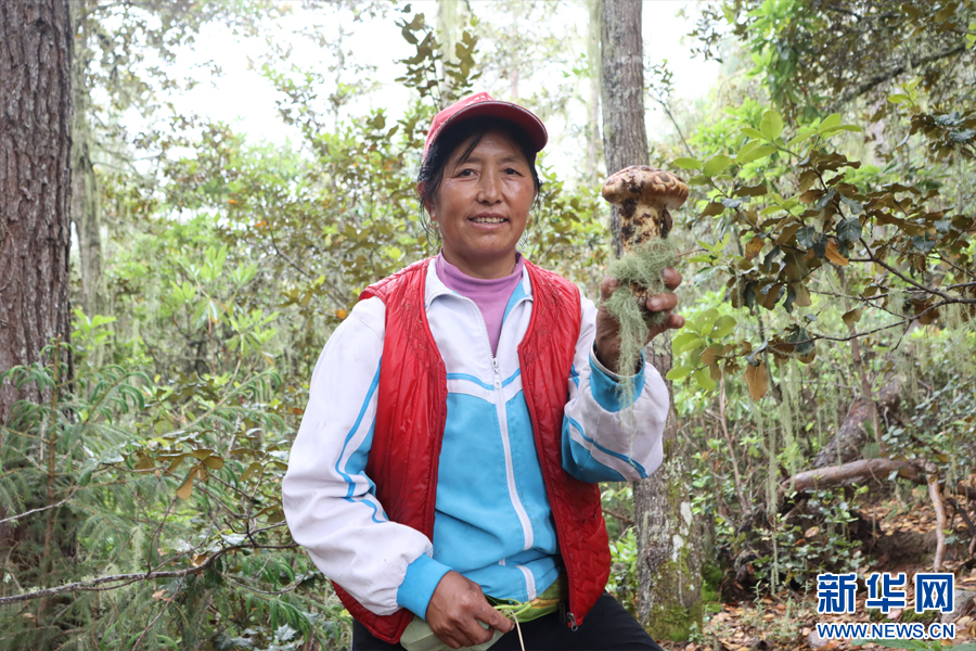 村民阿金宗找到了一朵很大的松茸(7月4日攝)。新華網發(德欽縣融媒體中心供圖)