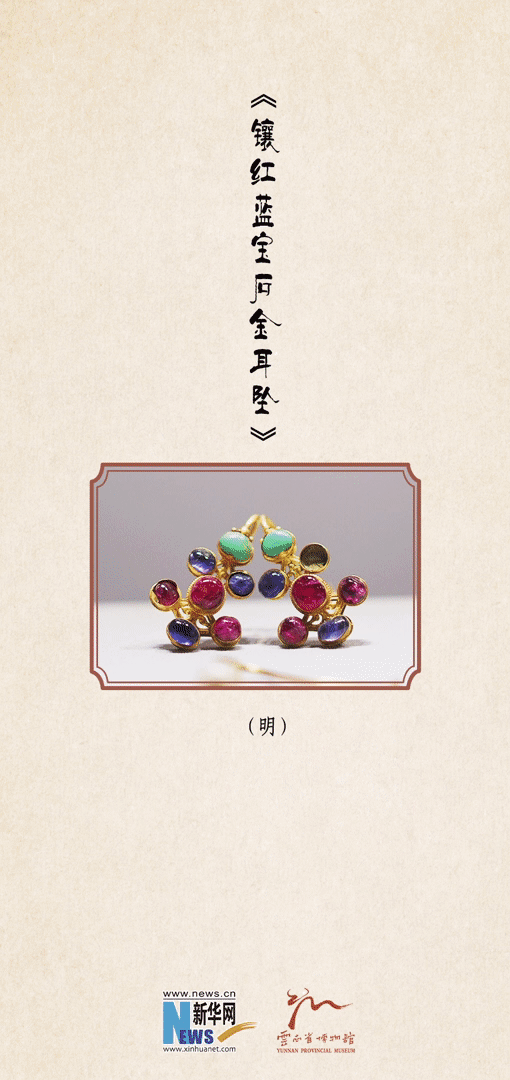 (明)鑲紅藍寶石金耳墜