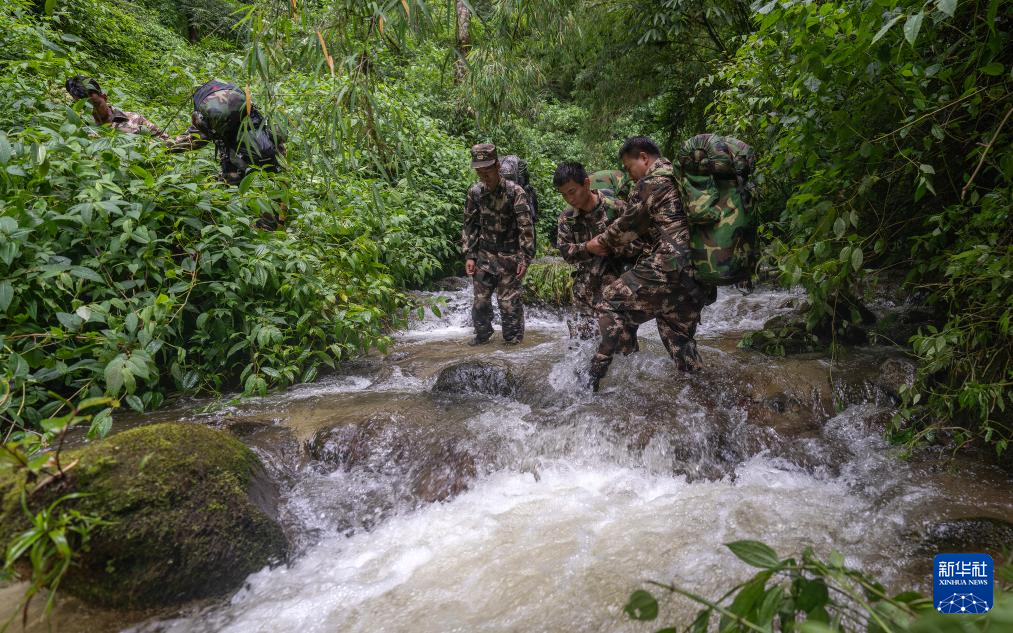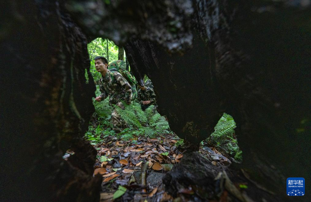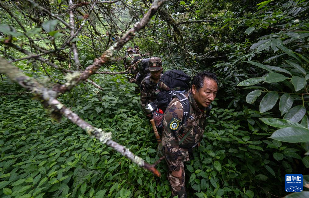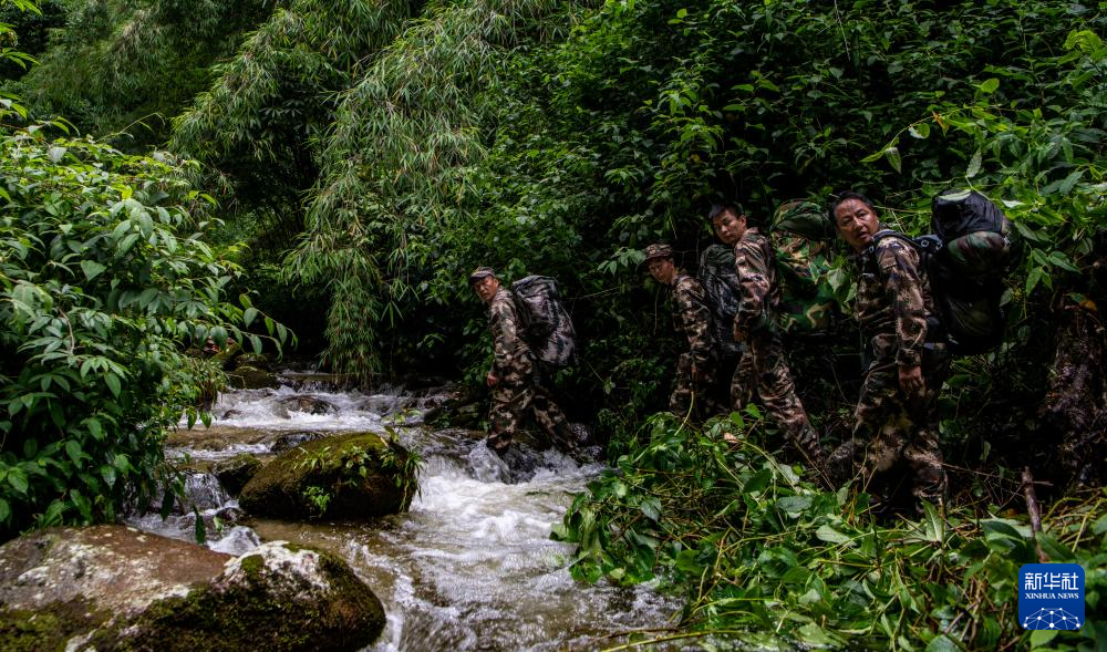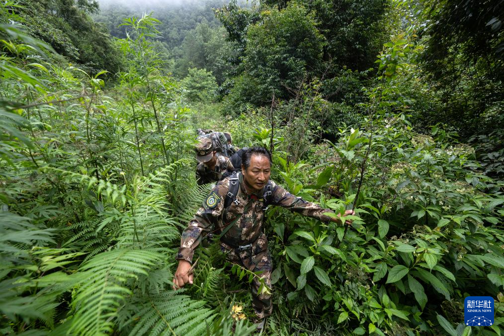 7月9日,巡護隊員在高黎貢山國家級自然保護區中行進。