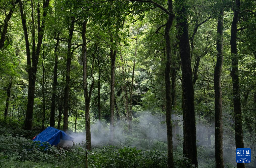 7月8日,在高黎貢山國家自然保護區,巡護隊員在搭建的棚子內休息。
