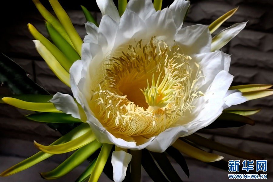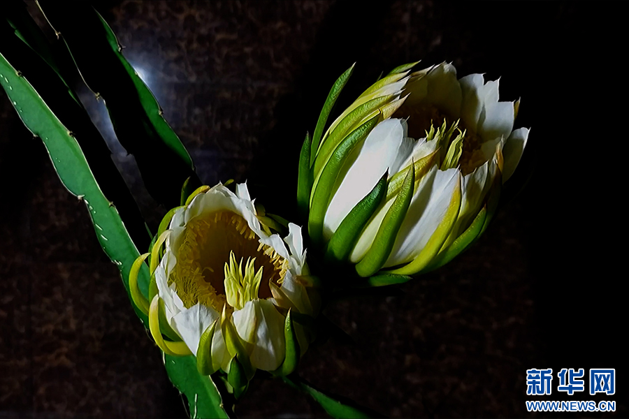 盛開的火龍果花。新華網發(視頻截圖)