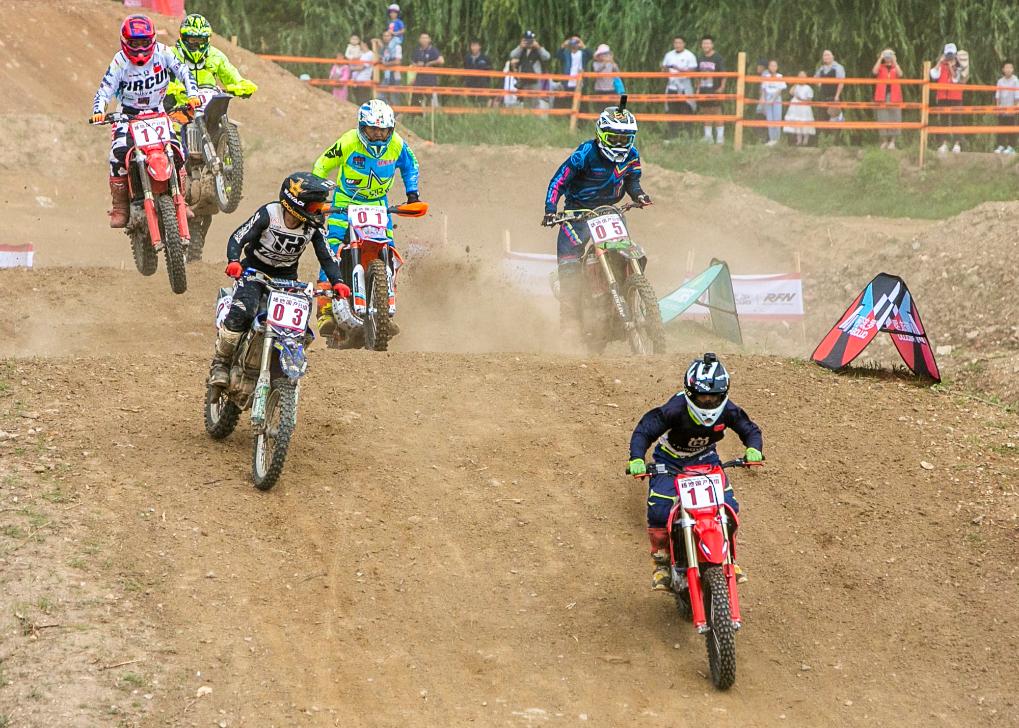 7月11日,越野摩托車手在比賽中。