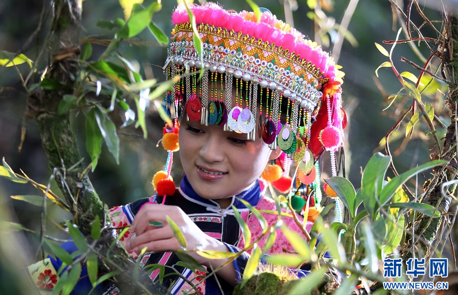 傈僳族少女采摘石斛(資料圖)。新華網發(保山市委宣傳部 供圖)