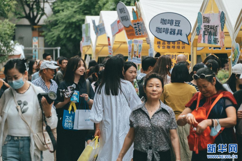 開幕當天,彌勒寺公園迎來摩肩接踵的人流,發酵編輯部、大富貴咖啡、羊小花宇宙、西班牙現切火腿、蘋果西、諳客咖啡、嘰里咕嚕小鎮、稀豆粉粑粑卷等等,公園內各種吃的、玩的琳瑯滿目,前來參加活動的男女老少各取所需,有的參加互動游戲,有的過足嘴癮,有的約上三五好友喝一杯咖啡聊了一下午。