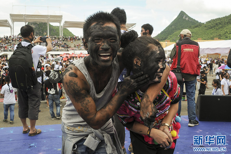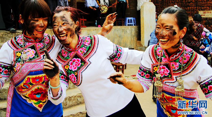 “花臉節”現場,人們互相抹黑臉部祈愿吉祥(資料圖)。新華網發(李明 攝)