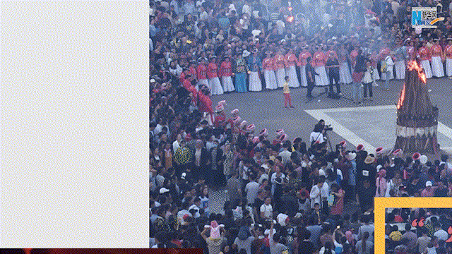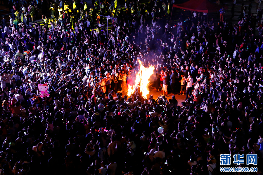 人們圍繞著廣場中心的巨型火把,載歌載舞(資料圖)。新華網發(楊躍 攝)