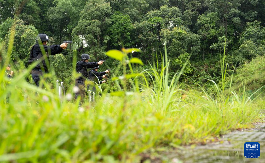 7月13日,尹銘燕(前)和戰友在進行射擊訓練。