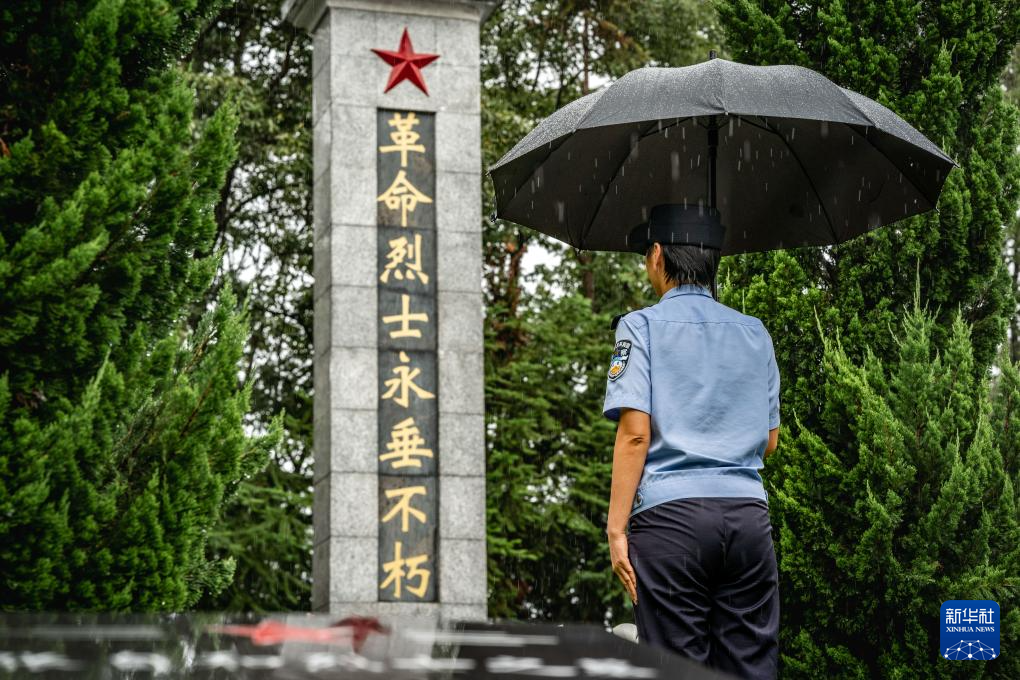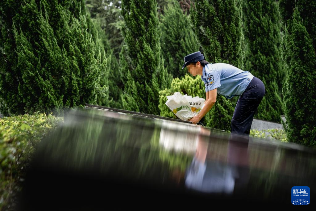 雨中,一把黑傘,一束白花,一身警服的尹銘燕拾級而上,走向云南德宏州隴川縣烈士陵園的最高處,那里長眠著她的哥哥尹銘志。