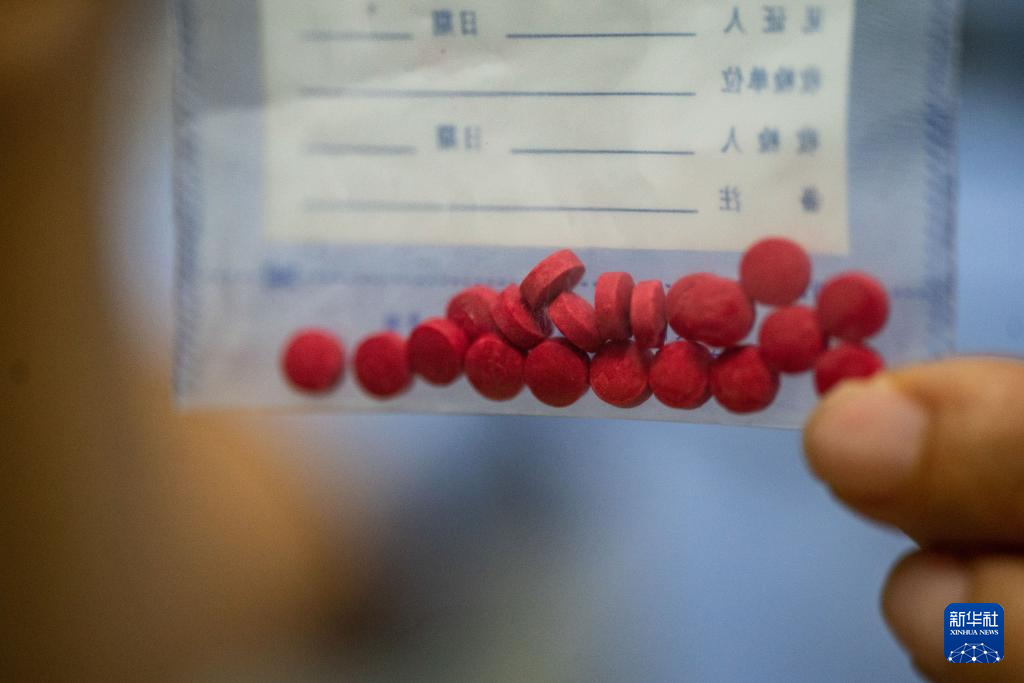 7月13日,尹銘燕展示最近破獲的一起特大販賣運輸毒品案中繳獲的226.7公斤冰毒中的部分樣品。