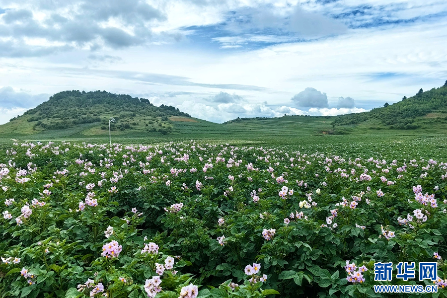 麗江市永勝縣會文村,洋芋進入盛花期(攝于7月8日)。新華網發(曹玉庚 攝)