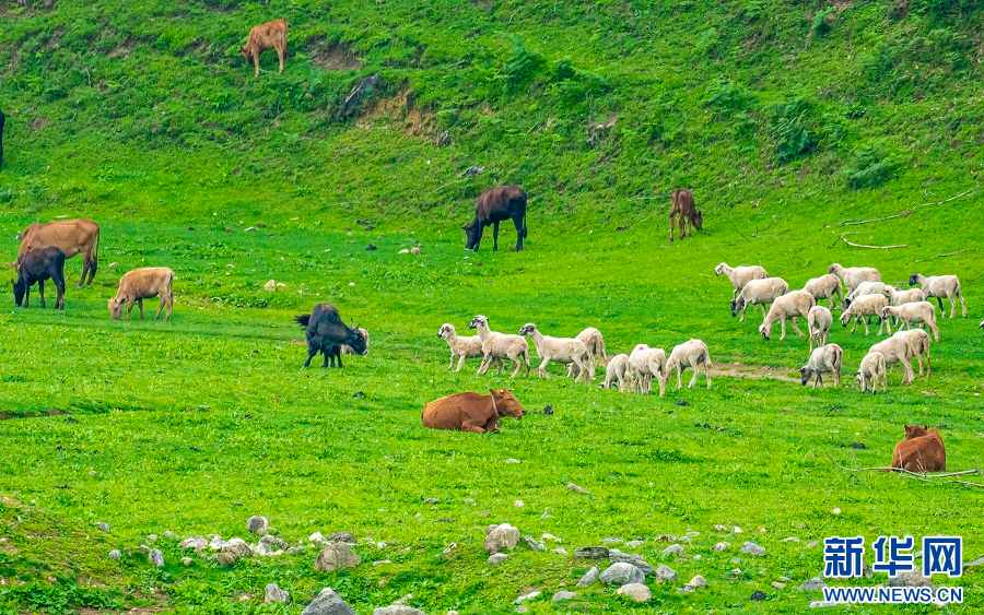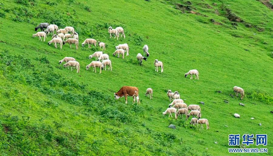 草原上的牛羊(7月8日攝)。新華網發(郭康 攝)