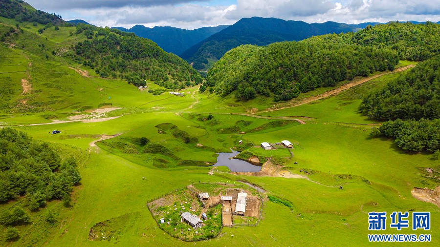 航拍草原上的牛羊(7月8日攝)。新華網發(郭康 攝)