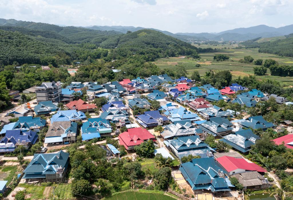 ↑這是依波逢外婆家所在的勐臘縣勐伴鎮納卡村一景(7月16日攝,無人機照片)。