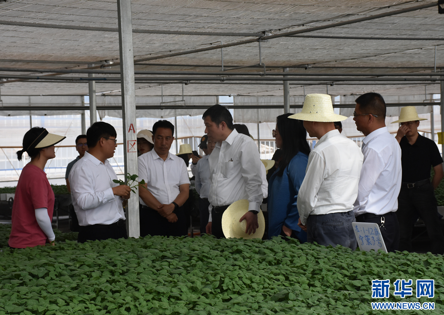 上海市楊浦區黨政代表團在寧蒗縣馬鈴薯原原種快繁中心調研(7月13日攝)。新華網發(和潤仙 攝)