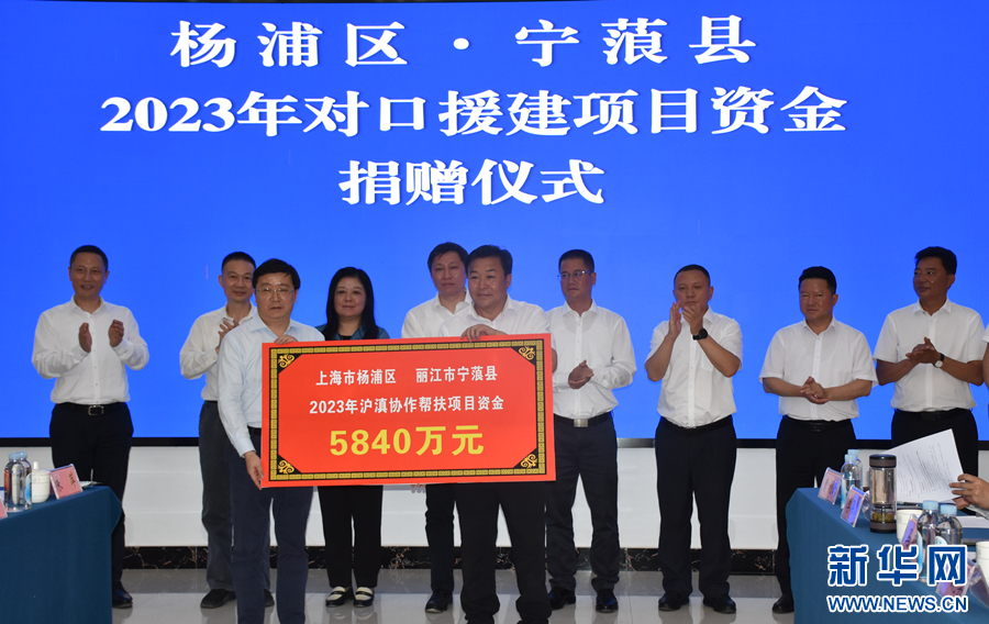 楊浦區·寧蒗縣2023年對口援建項目資金捐贈儀式現場(7月13日攝)。新華網發(和潤仙 攝)