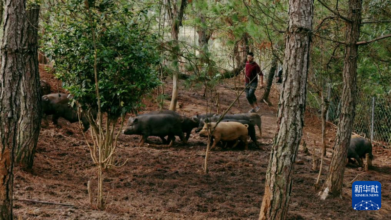 青山綠水中,一群群“放山豬”穿梭在叢林中,個個野性十足。這些產自云南省保山市昌寧縣更戛鄉的“放山豬”,長年放養山間,春食青草,夏食山菌,秋食野果,冬食草根,所產豬肉生態健康,口感細膩。