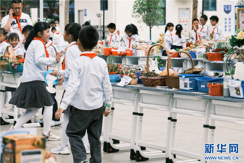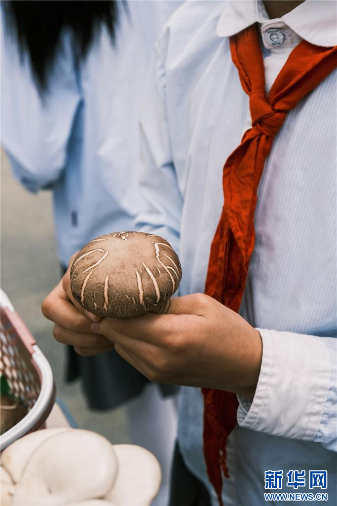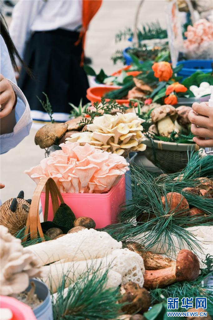 操場上,孩子們擺起了野生菌集市