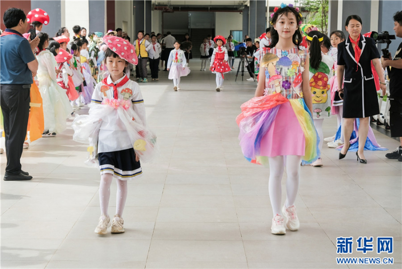 長廊里,孩子們走起了野生菌環保時裝秀
