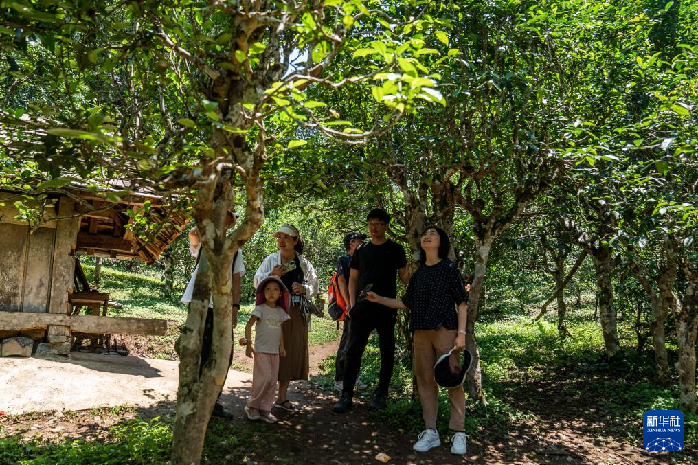 游客在瀾滄縣景邁山古茶林參觀(7月18日攝)。