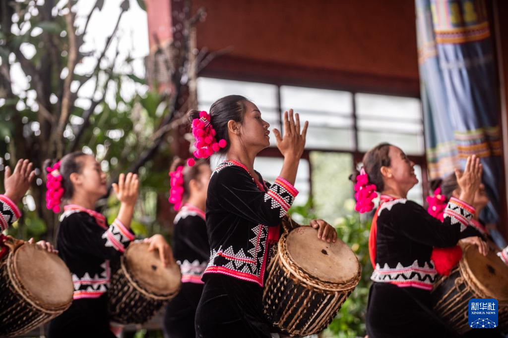 瀾滄縣東回鎮班利村村民表演拉祜族舞蹈(7月20日攝)。