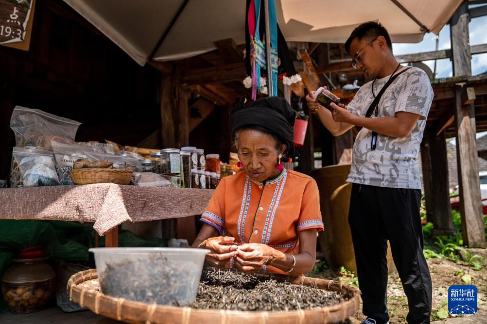 在瀾滄縣惠民鎮翁基古寨,來自上海的游客在一家咖啡館購買咖啡(7月18日攝)。
