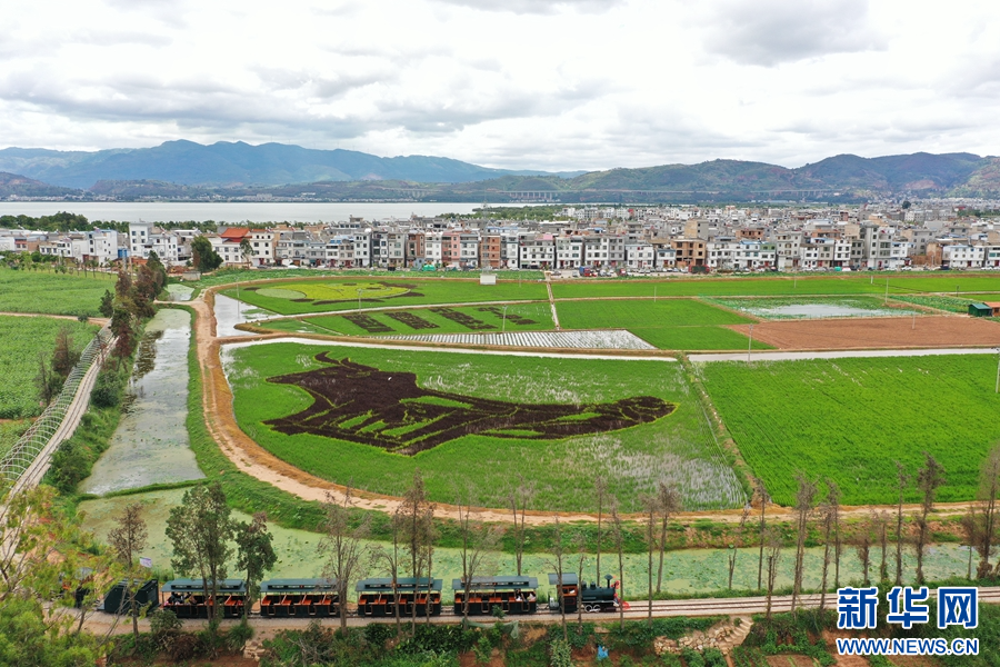 據悉,為吸引游客的到來,江川區按照綠色生態和農旅融合的發展理念,在星云湖畔規劃種植了以“有一種叫云南的生活”為主題的稻田藝術畫,除“?;~案”外,還繪制了一個可愛的“大頭魚”,以這樣一種極具創意的形式,向廣大游客集中展現江川區的青銅文化和魚文化。