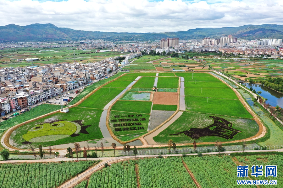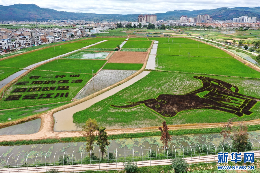 玉溪市江川區以“有一種叫云南的生活”為主題的稻田藝術畫(攝于7月11日)。新華網發(李丹 攝)