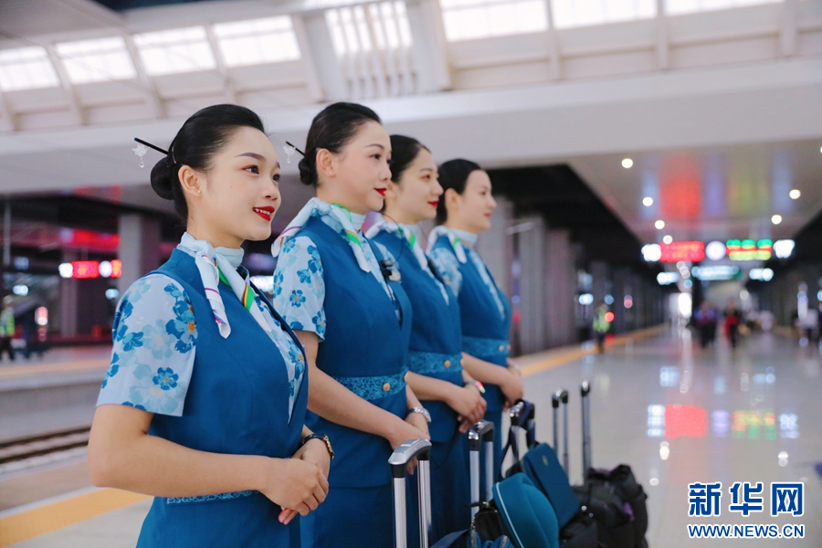 中老鐵路國際旅客列車乘務員準備出乘(資料圖)。新華網發(楊紫軒 攝)