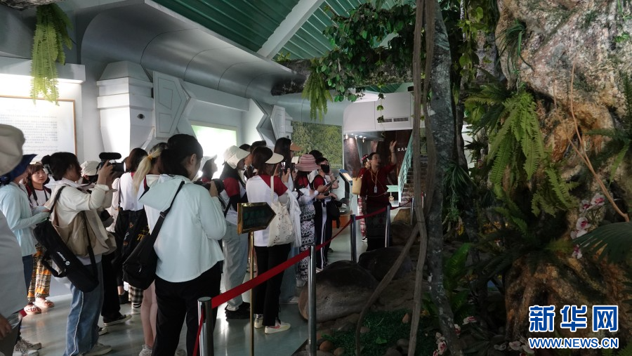 師生們參觀熱帶雨林民族文化博物館(7月23日攝)。 新華網發(巖罕丙 攝)