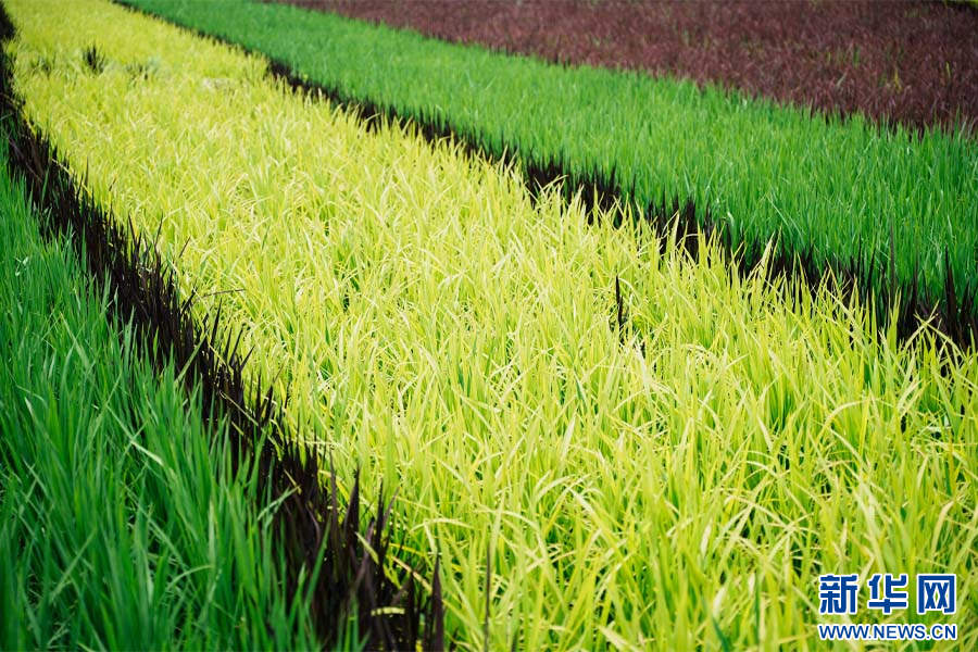 溫泉街道彩色水稻(7月21日攝)。新華網發(安寧市融媒體中心供圖)
