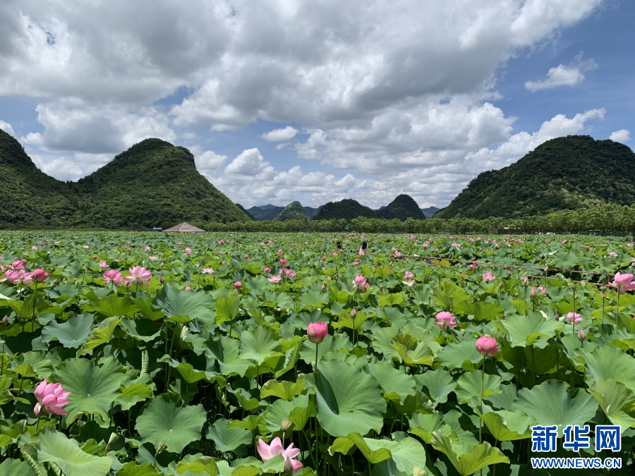 普者黑國家濕地公園內,荷花盛開(7月23日攝)。新華網發(楊苑 攝)