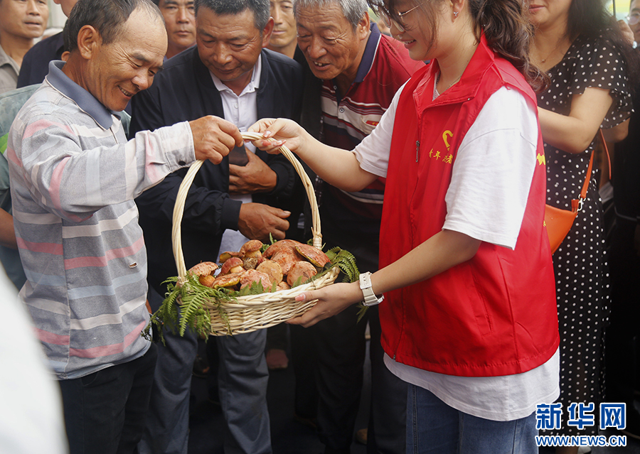 市民參加野生食用菌拍賣(7月28日攝)。新華網發(馮雨釤 攝)
