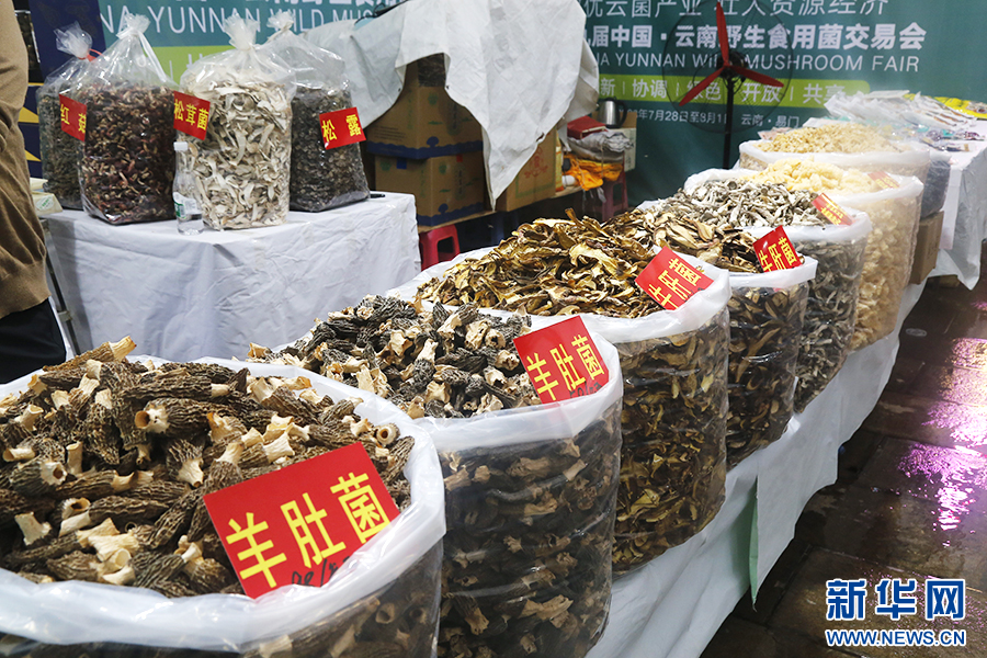 菌交會上各類食用菌干(7月28日攝)。新華網發(馮雨釤 攝)