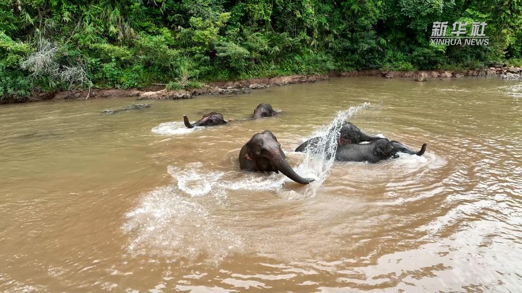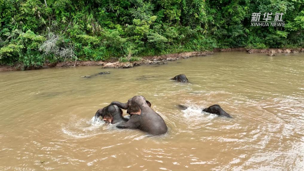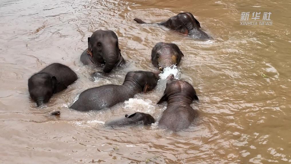 近日,記者在云南省普洱市江城哈尼族彝族自治縣拍到一群野生亞洲象在河里洗澡戲水、降溫解暑的有趣畫面。