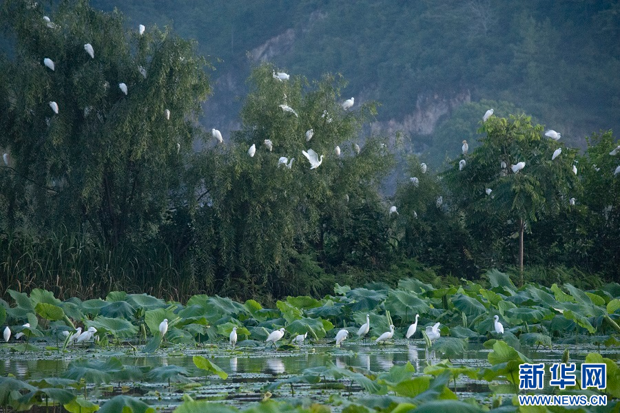 云南保山施甸:野鴨湖畔生態美 白鷺蹁躚來賞荷_新華網