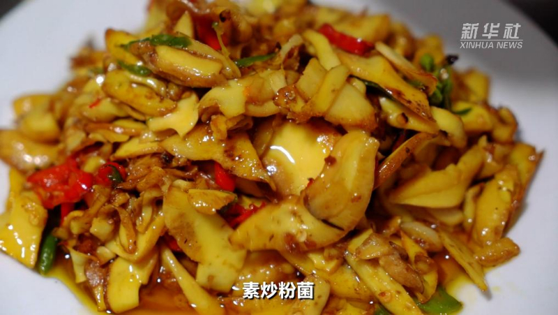 其中,大紅菌燉臘肉、素炒雞樅、素炒粉菌、干巴菌蒸蛋、白菌燉土雞等,是最具特色的昌寧菌子宴的常見做法。這些帶著大自然清香的季節美食,成品色澤誘人,味道鮮香回味,是昌寧人家家戶戶都喜好的家鄉美食。