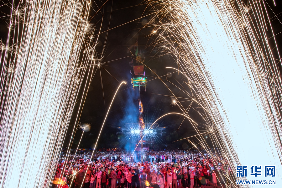 洱源縣城,群眾歡度火把節(攝于8月11日)。新華網發(楊燦華 攝)