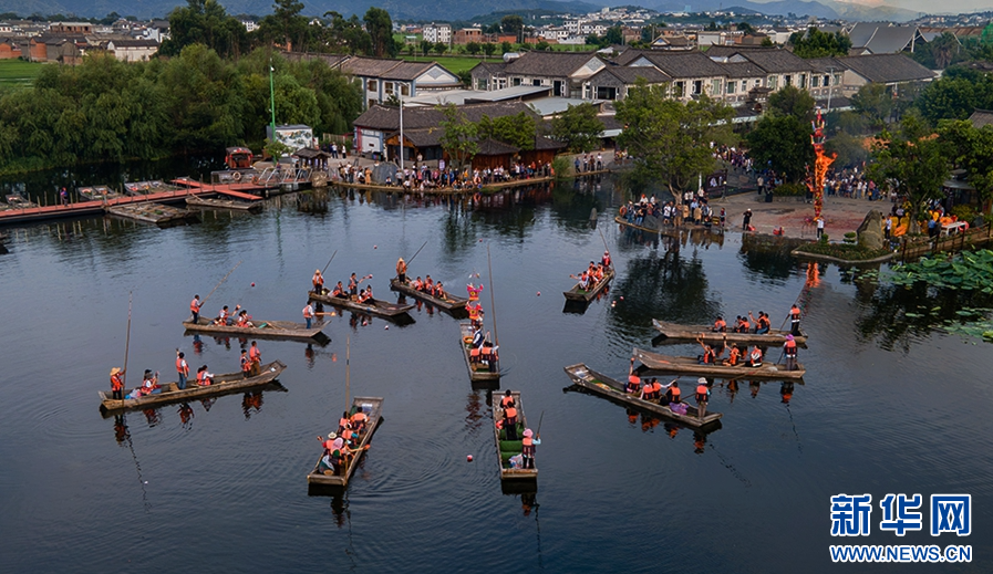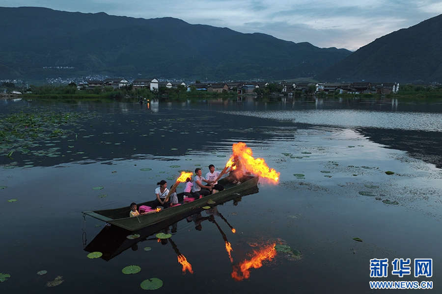 洱源西湖,群眾歡度火把節(攝于8月11日)。新華網發(羅新才 攝)