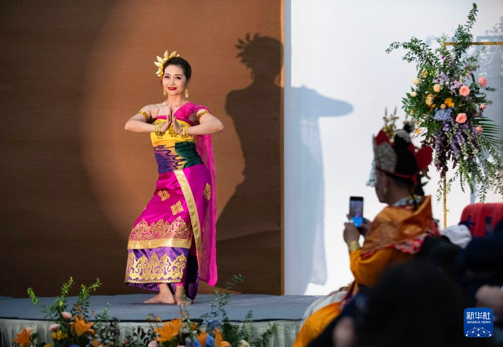 8月15日,參加第11屆中國·南亞東南亞藝術周開幕式的舞蹈藝術家翟婭琴在表演印尼舞蹈《班納舞》。新華社記者 陳欣波 攝