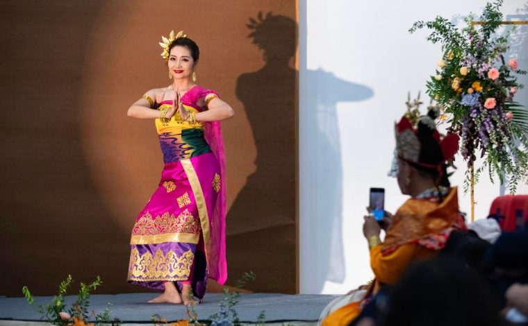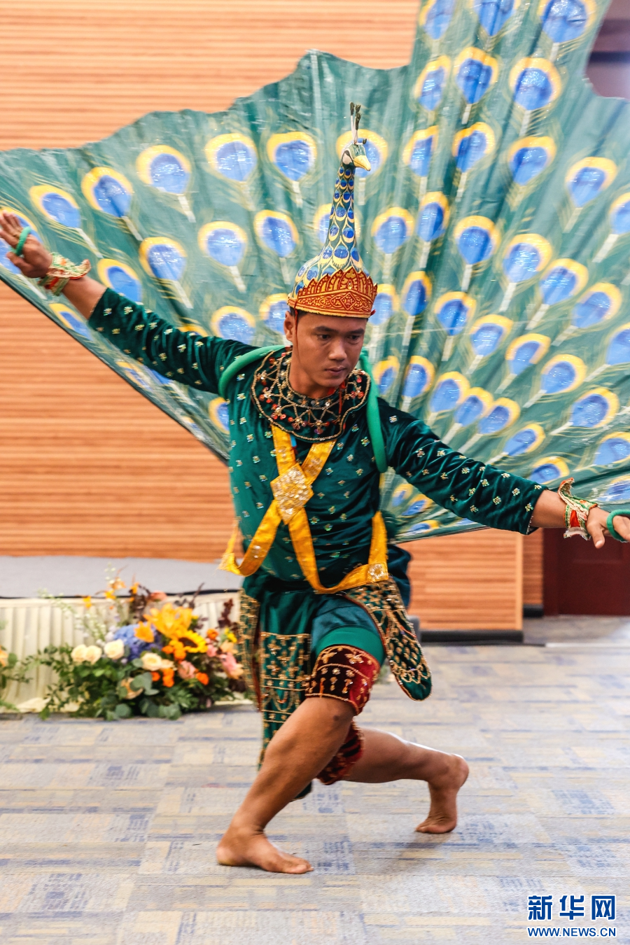 柬埔寨舞蹈演員表演《孔雀舞》(8月15日攝)。新華網 趙普凡 攝