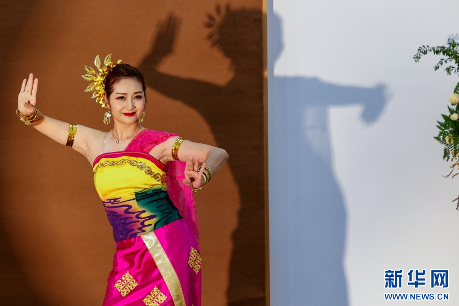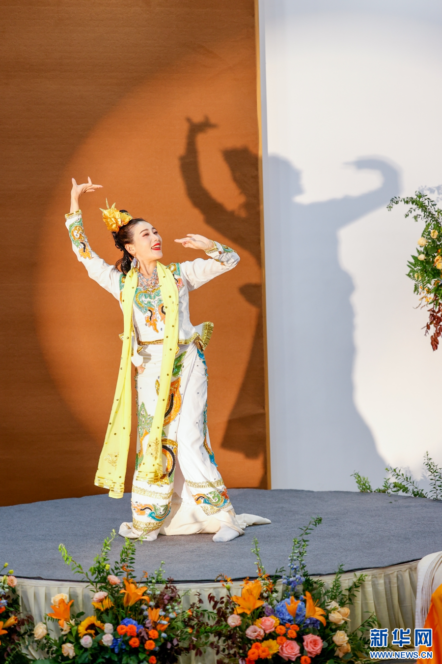 中國東方演藝集團舞蹈演員表演緬甸舞蹈《敏阿拉巴》(8月15日攝)。新華網 趙普凡 攝