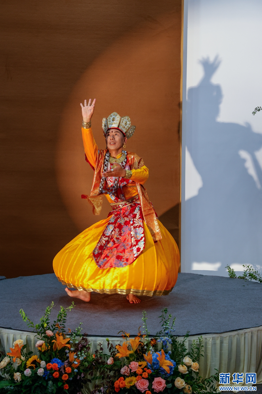 尼泊爾舞蹈演員表演《曼珠什麗舞》(8月15日攝)。新華網 趙普凡 攝