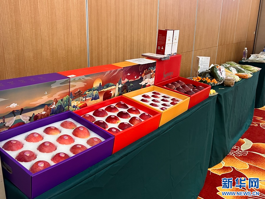 現場展示的蘋果(8月16日攝)。新華網發(雷雁雯 攝)