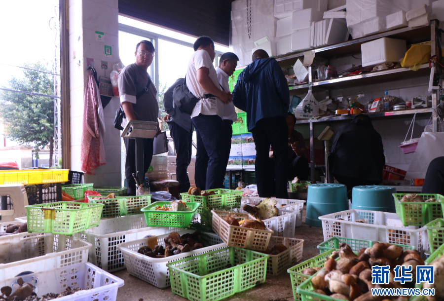 菌農正在售賣菌子(8月14日攝)。新華網發(李婭潔 攝)